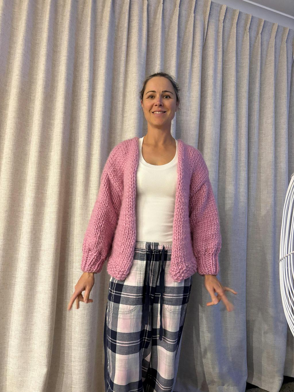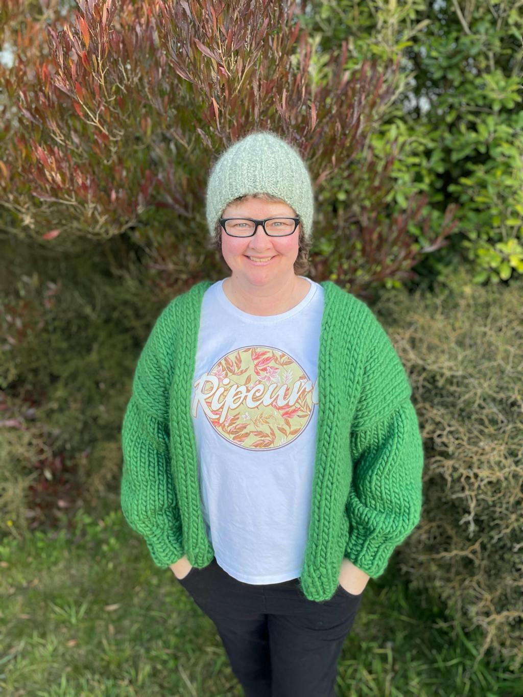 I absolutely loved making this cardi, as a total newbie I loved the easy to watch videos and instruction book. The thick chunky yarn made it easy to see my knits or purls. This cardi is so super warm, perfect for southland weather. I made a size 10/12 and added extra lengths on arms and body.