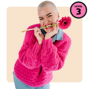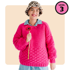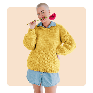 Can I get a ‘Beginner-friendly baby’ from y’all! Yes indeedy, this jumper may look a bit flash but our little secret is that all you need are the olde knit and purl to create your very own masterpiece. Knit flat from the bottom up and seamed at the end, we do introduce circular needles but never fear, we’re with you all the way!
