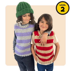Beginner! While this vest is knit in the round which may freak some people out - it actually makes it a super simple and quick knit and of course - we’ll be with you all the way!!