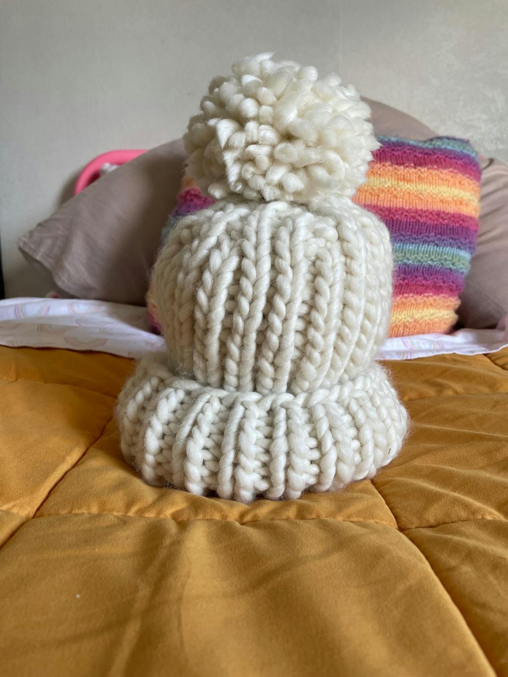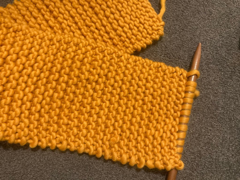 - gauge = 7sts / 10 rows in 10cm stockinette swatch on 15mm needles