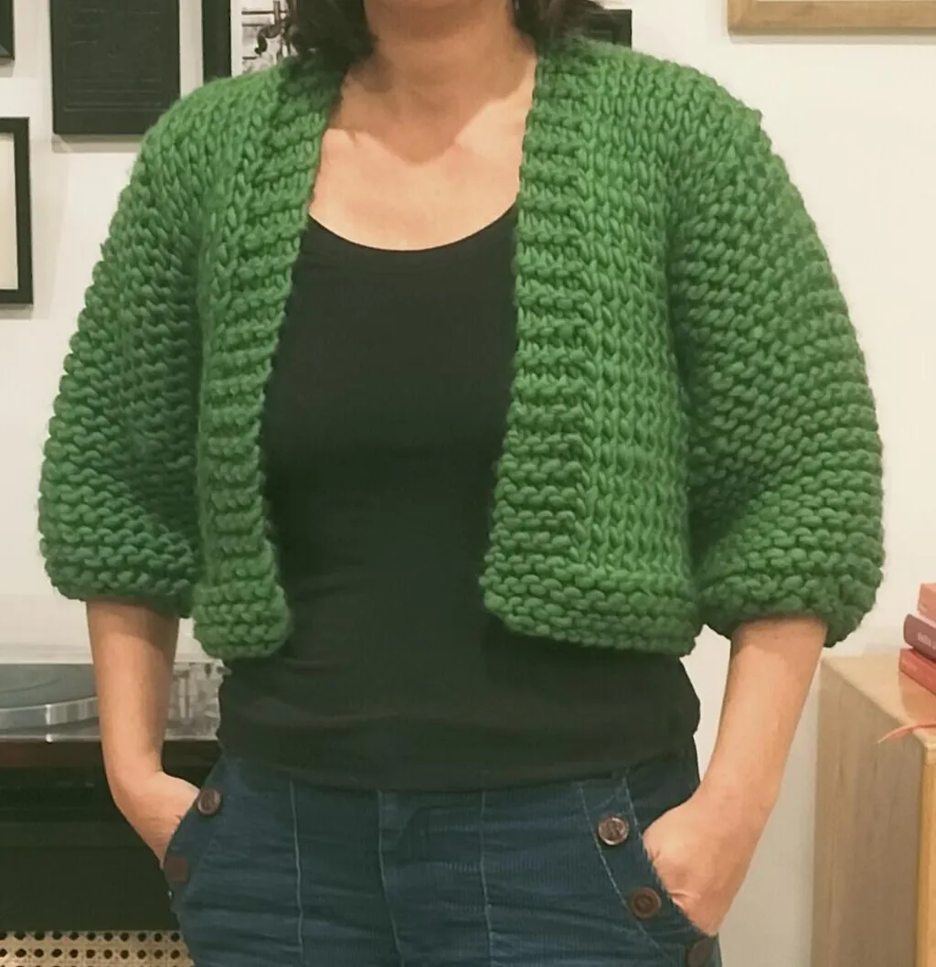 A newbies dream, this Cardi is knitted flat with a super simple faux ribbed edging detail. The sleeves are picked up and knitted flat also and then the whole thing is (super gratifyingly) seamed up at the end!